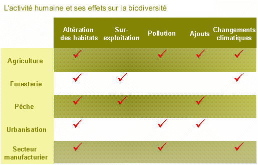 et d'invertébrés, l'altération des habitats et la pollution. (Thibault,