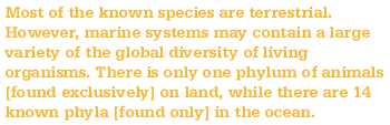 of species remain unidentified. Of the 34 known animal phyla, only one